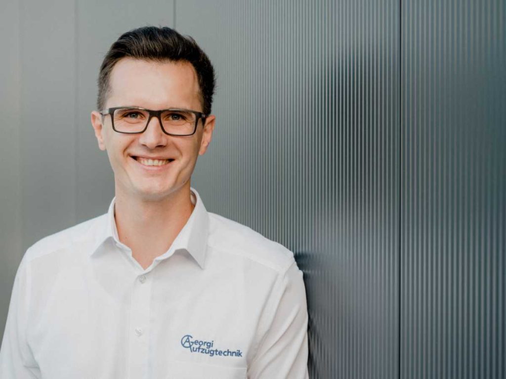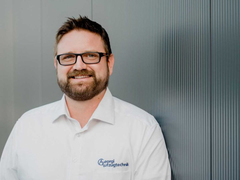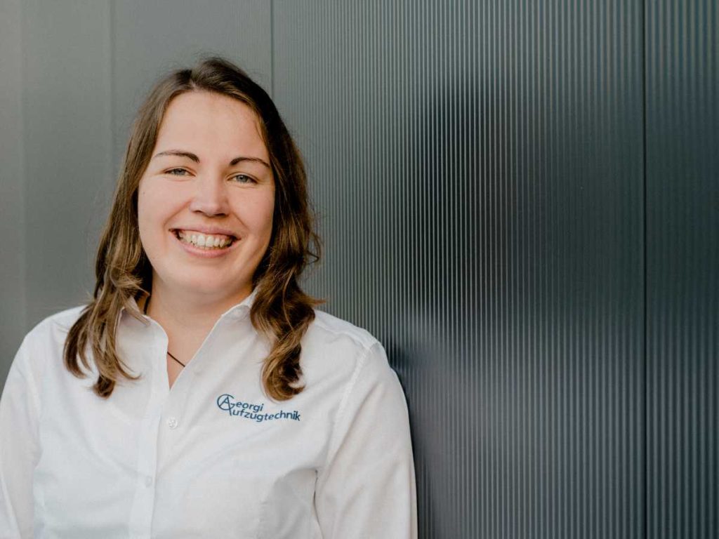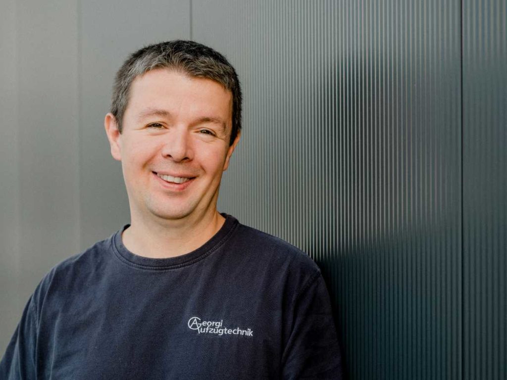 Helena Georgi (v. l.), Jörg Künzel, Nikolai Wlasenko, Kerstin Bedrunka (Assistentin Service), Sylvia Buschery (Sekretariat, Rechnungswesen), Monika Hünnies (Rechnungswesen, Personalwesen, Assistentin Neubau), Sebastian Weber, Matthias und Jürgen Georgi sowie Bürohund Leni.